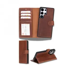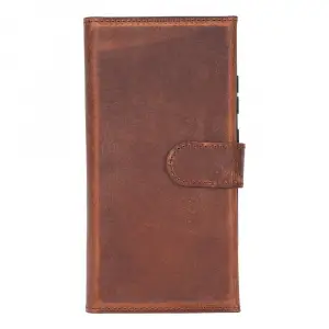 Samsung Galaxy S25 Ultra uyumlu, Hakiki Deri, El Yapımı, Cüzdanlı Kılıf, Antik Kahve