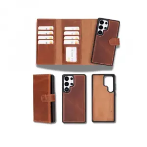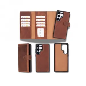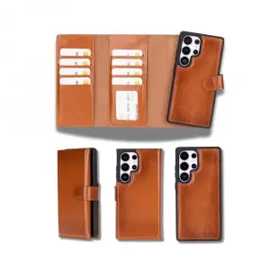 Samsung Galaxy S25 Ultra uyumlu, Hakiki Deri, El Yapımı, Cüzdanlı Kılıf, Gölgeli Taba