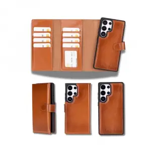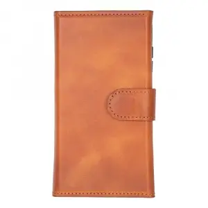 Samsung Galaxy S25 Ultra uyumlu, Hakiki Deri, El Yapımı, Cüzdanlı Kılıf, Karamel