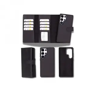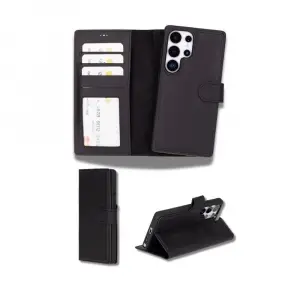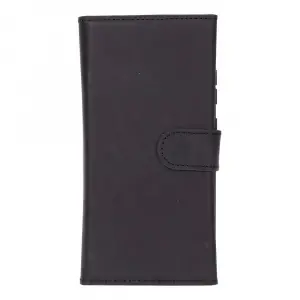 Samsung Galaxy S25 Ultra uyumlu, Hakiki Deri, El Yapımı, Cüzdanlı Kılıf, Mat Siyah