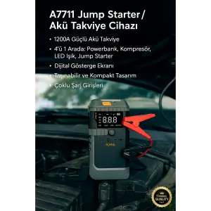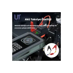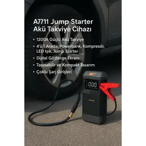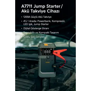 Araç İçi Jump Starter ve Powerbank | 1200A Akü Takviye, Hava Kompresörü, LED Işıklı LCD Ekranlı