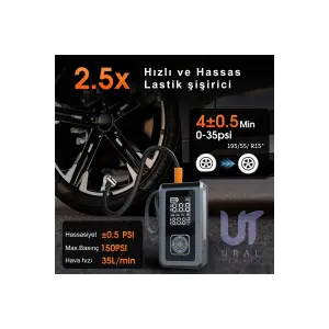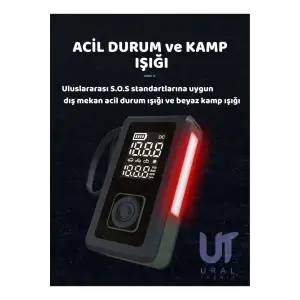 Taşınabilir Şarjlı Ekranlı Akü takviye-Powerbank-S.O.S ve Kamp Işıklı Lastik Şişirme Hava Kompresörü
