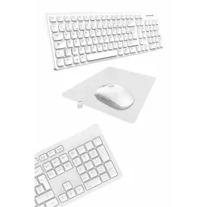 Kablosuz Klavye Mouse Seti Beyaz Q Klavye Tüm Cihazlara Uyumlu
