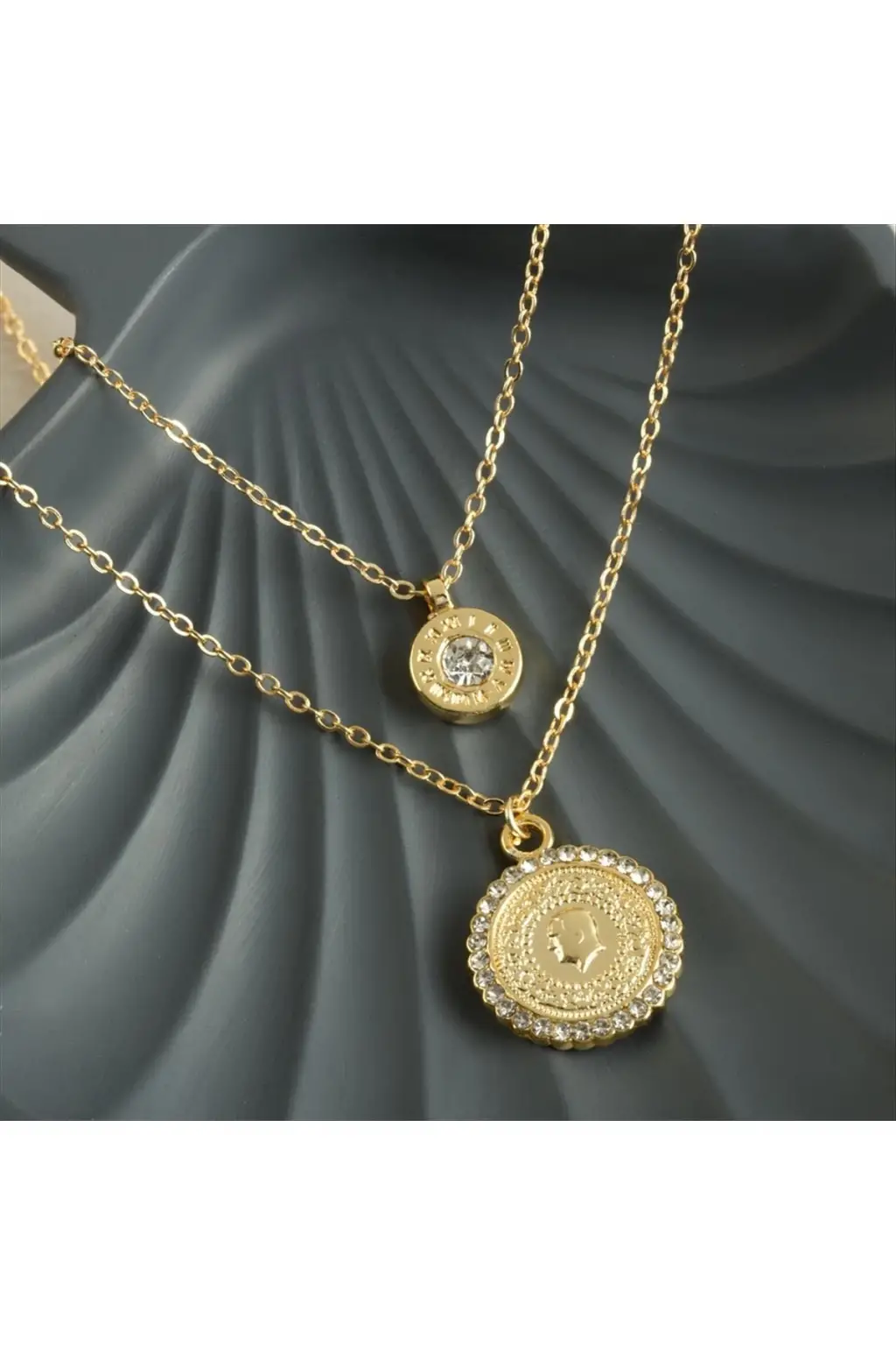 İkili Kolye; Malzemesi metaldir. İki zincirden oluşur. Kartıyla beraber gönderilecektir. Ürün boyu yaklaşık 50 cmdir.