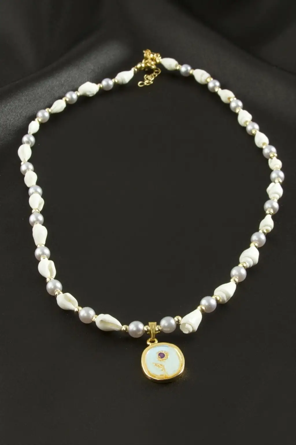 Çiçek Deniz Kabuğu İnci Mineli Kolye