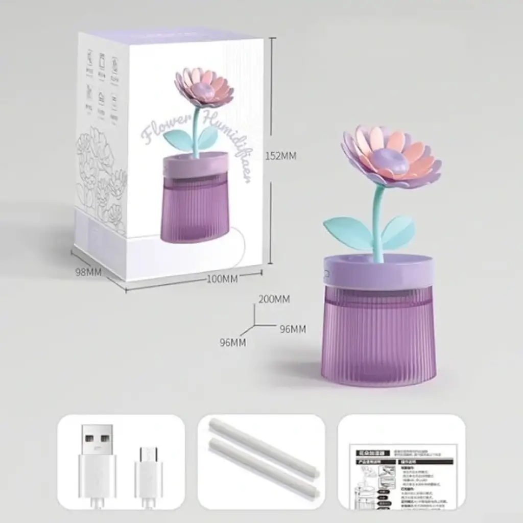 ÇİÇEK HAVA NEMLENDİRİCİÜrün AçıklamasıŞık çiçek tasarımlı bu nemlendirici, estetik görünümüyle hem dekoratif hem de işlevsel bir üründür. Üst kısmında bulunan çiçek şekli ve modern renk kombinasyonları, masa üstü veya raflarda dikkat çekici bir görünüm sunar. Ortam havasını nemlendirerek kuru havayı önler ve daha sağlıklı bir atmosfer yaratır. USB bağlantısı ile çalışarak enerji tasarrufu sağlar ve kullanım kolaylığı sunar. Kompakt ve hafif tasarımı sayesinde taşınabilir olup her ortamda kullanılabilir. Yumuşak LED aydınlatma özelliği bulunan modelleri, nemlendiriciyi aynı zamanda bir gece lambası olarak da kullanabilmenizi sağlar. Çocuk odasından ofise, yatak odasından çalışma masasına kadar farklı alanlarda hem işlevsel hem de dekoratif bir çözüm sunar.Ürün ÖzellikleriÇiçek tasarımlı nemlendirici, estetik görünümü ve şık çiçek şekliyle hem dekoratif hem de işlevsel bir üründür. Ortamın havasını nemlendirerek kuru havayı önler ve sağlıklı bir atmosfer oluşturur. USB bağlantısıyla çalışan bu ürün, enerji tasarrufu sağlar ve kullanımı oldukça kolaydır. Kompakt ve hafif tasarımı sayesinde her yerde rahatlıkla taşınıp kullanılabilir. Dayanıklı plastik malzemeden üretilmiştir ve yumuşak LED aydınlatma özelliği bulunan modelleriyle gece lambası olarak da kullanılabilir. Mor tabanı ve pastel tonlardaki çiçek deseniyle çocuk odaları, ofis masaları ve yatak odaları için mükemmel bir dekoratif aksesuar ve nemlendirici çözüm sunar.Paket İçeriği1 adet çiçek tasarımlı nemlendirici1 adet USB kabloYedek filtre çubukları