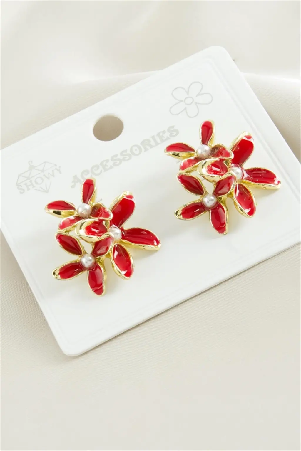 Küpe; Ürün malzemesi İnci, mine boyama ve metaldir. Ürün üzeri kaplamalıdır. Ürün boyu 2,5 cmdir Kartlıdır.