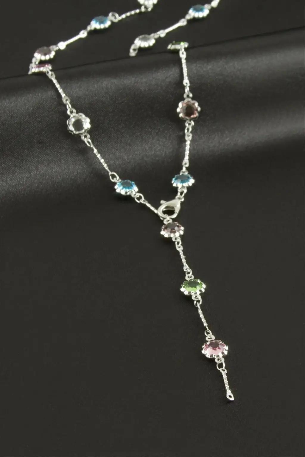 Çiçek Zirkon Taşlı Çelik Y Kolye