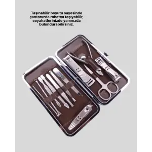 Taşınabilir Deri Kutulu 17 Parça Manikür Seti