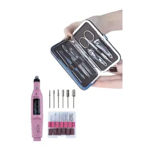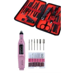 Elektrikli Manikür Pedikür Seti İkili Set 12 Parça Tırnak Bakımı Törpü Protez Çıkarma