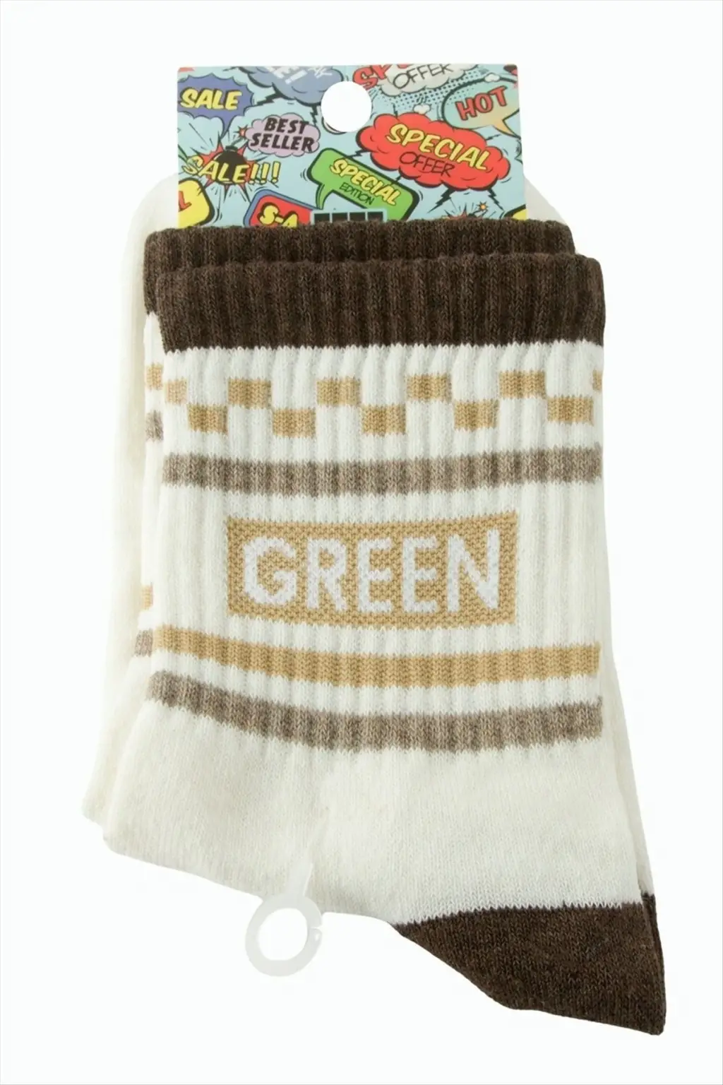 Çorap; Ürün malzemesi polyester ve üzeri desenlidir. Boyu 28 cm ve genişliği 8 cmdir. Ürün numarası 37-41 arasındadır.