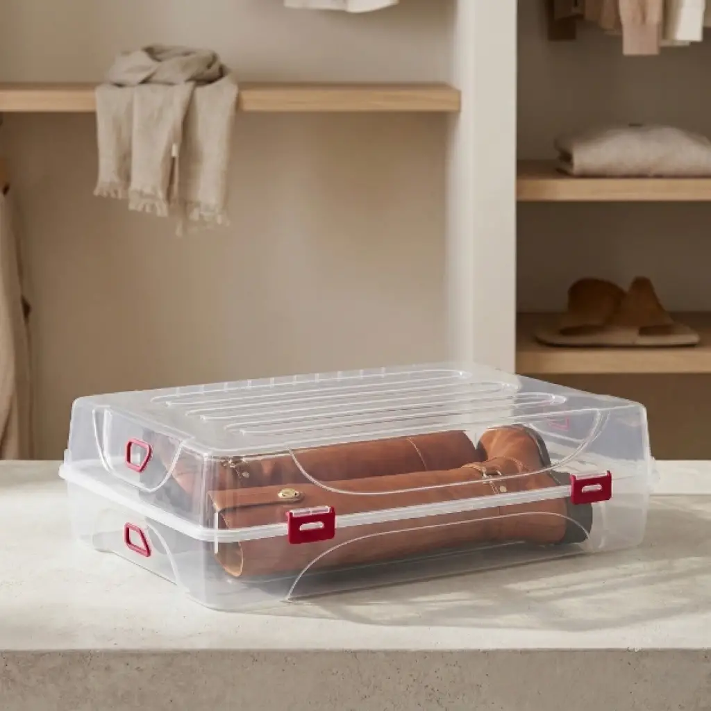 ÇİZME SAKLAMA KUTUSU Ürün ÖzellikleriÇizme Saklama Kutusu, ayakkabı dolaplarınızda düzen sağlamak ve uzun yapılı çizmelerinizi dış etkenlerden korumak için mükemmel bir çözümdür. 61x37x14 cm boyutlarındaki geniş ve uzun formlu tasarımı, çizmelerin katlanmadan, formunu bozmadan saklanmasına olanak tanır. Kristal berraklığındaki şeffaf gövde yapısı, kutuyu açmanıza gerek kalmadan içerisindeki ayakkabıyı kolayca tespit etmenizi sağlar. Yan kısımlarda bulunan kilitli kapak mekanizması, kutunun güvenli bir şekilde kapanmasını sağlayarak toz, nem ve koku girişini engeller. Üst üste istiflenebilir özelliği sayesinde dolap içlerinde veya yatak altlarında maksimum yer tasarrufu sağlar. Dayanıklı ve sağlığa uygun plastik materyalden üretilen bu çok amaçlı saklama kutusu, sadece ayakkabılar için değil, tekstil ürünleri veya ev aksesuarlarını organize etmek için de idealdir. Hijyenik ve şık tasarımıyla bu şeffaf düzenleyici, yaşam alanlarınızdaki karmaşayı sonlandırarak eşyalarınızın ömrünü uzatır.Ürün Teknik ÖzellikleriÖzellikAçıklamaÜrün AdıÇizme Saklama KutusuBoyutlar61 x 37 x 14 cmRenkŞeffaf Gövde - Kırmızı Kilit DetaylıMalzemeYüksek Kaliteli, Dayanıklı PlastikKapak SistemiÇift Yan Kilitli KapakTasarımDikdörtgen Uzun Form - İstiflenebilirKullanım AlanıÇizme, Ayakkabı, Tekstil ve Genel SaklamaPaket İçeriği1 Adet Şeffaf Çizme Saklama Kutusu