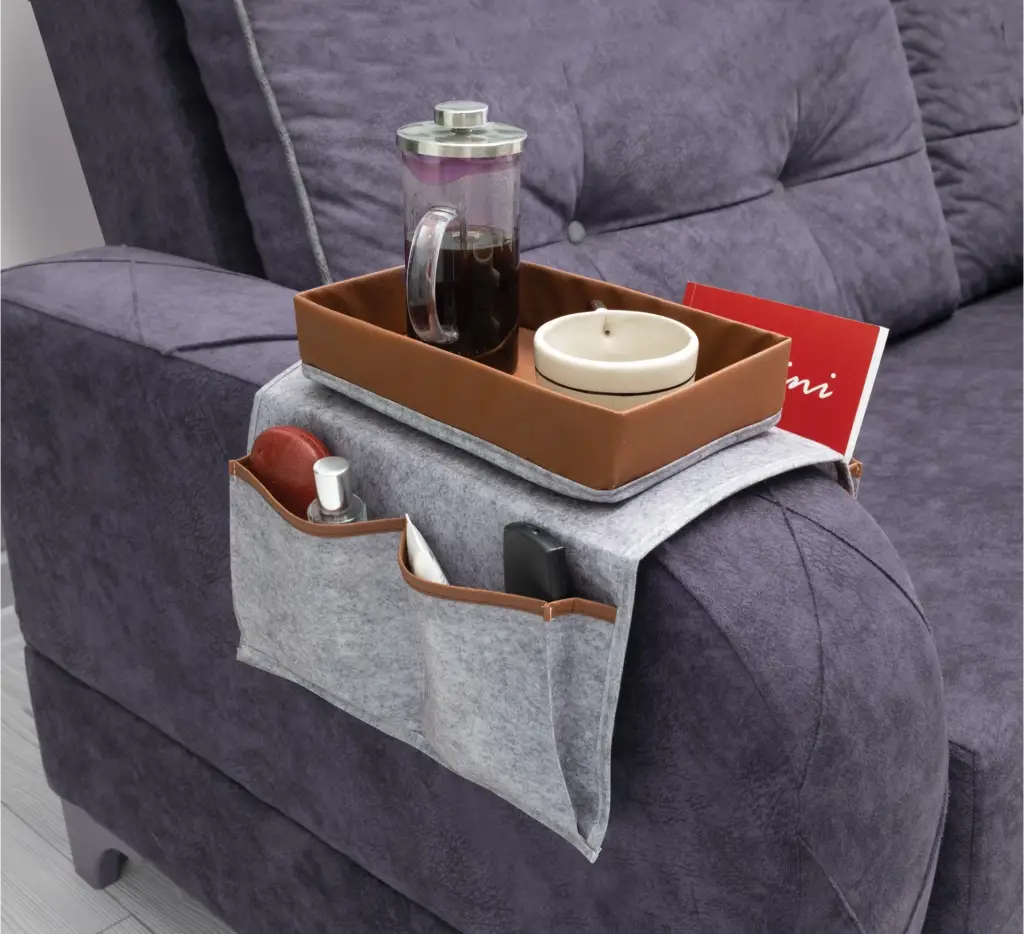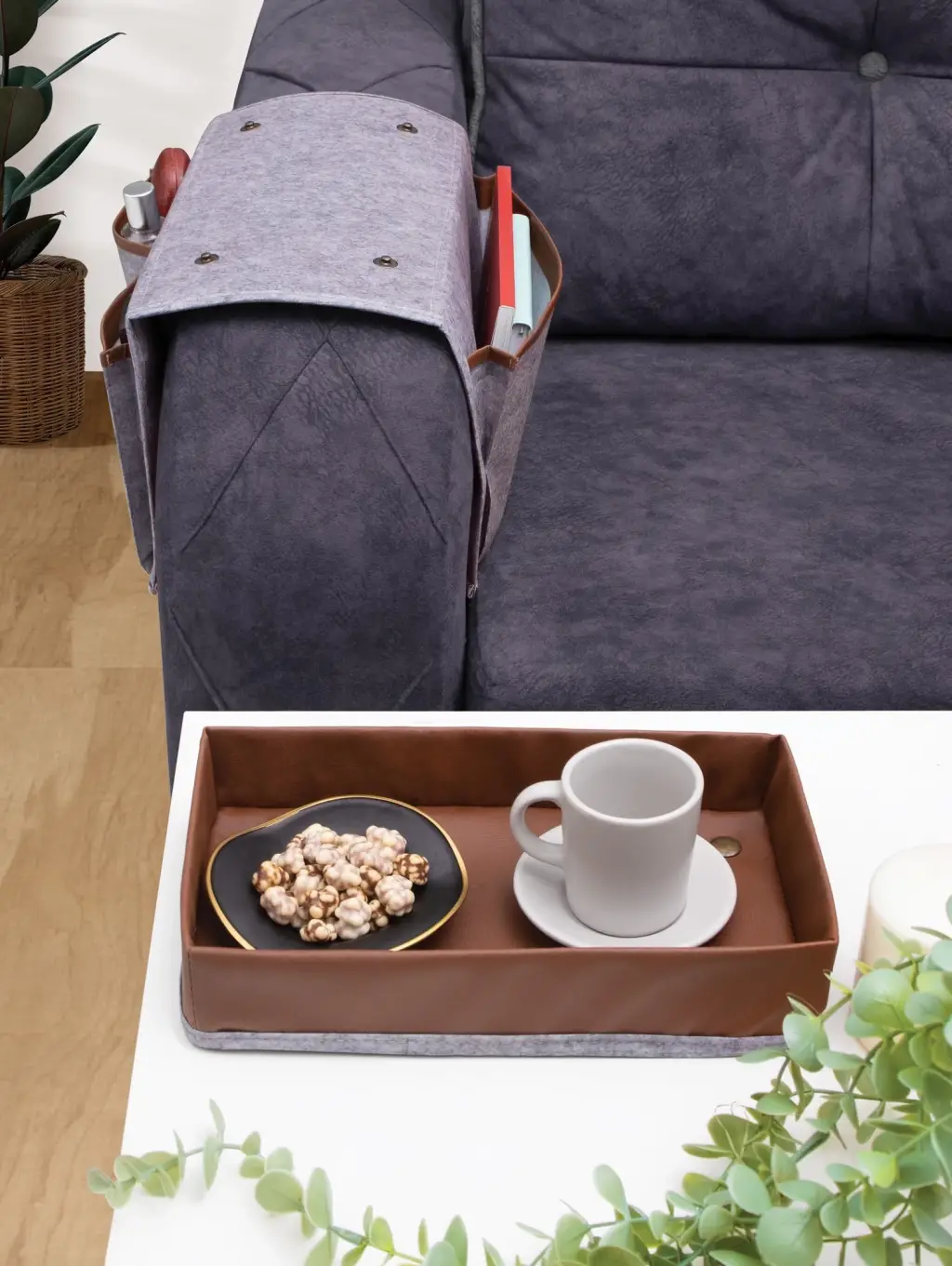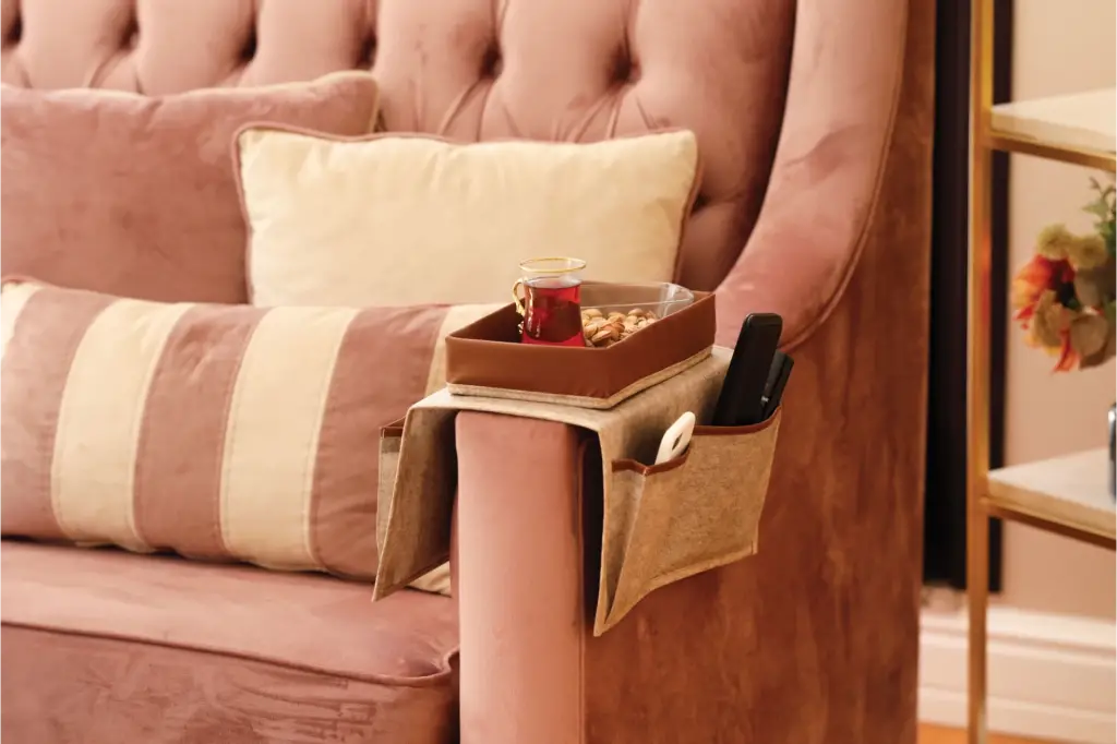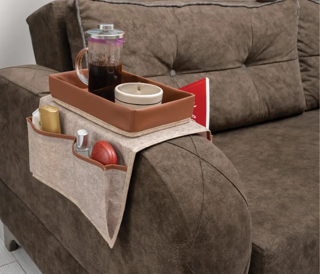 Koltuk-kanepe olan her yeri düzenleyen, ayrılabilir tepsili düzenleyici.