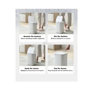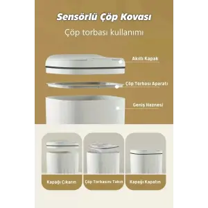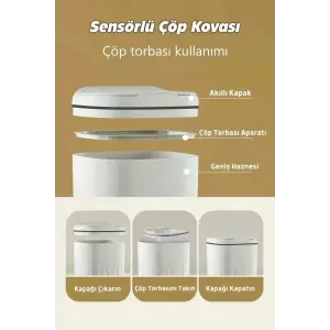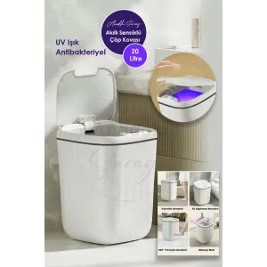 Akıllı Teknolojik Çöp Kutusu UV Işıklı Otomatik Aç Kapat Sensörlü Mutfak Banyo Ev 20L