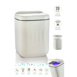 Akıllı Sensörlü Çöp Kovası 20L - UV Işık Antibakteriyel & Koku Geçirmez Otomatik Mutfak Ofis Banyo Kovası