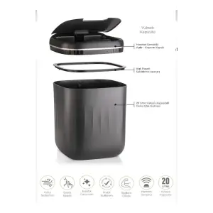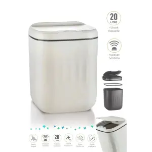 20 Lt Akıllı Çöp Kovası – Ofis Mutfak Banyo İçin İdeal Hareket Sensörlü, Hijyenik, Estetik