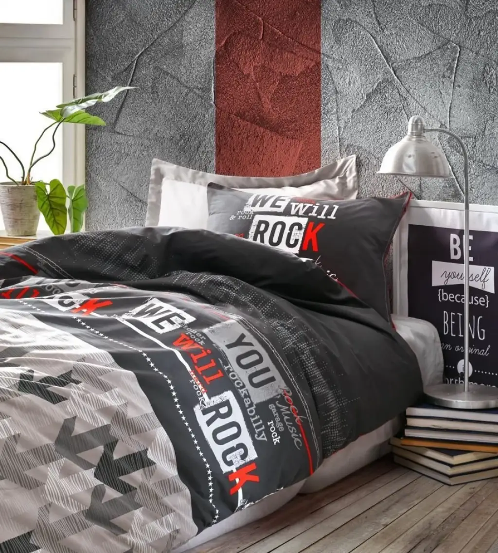 Cotton Box Genç Ranforce Nevresim Takımı Tek Kişilik Rock Kırmızı