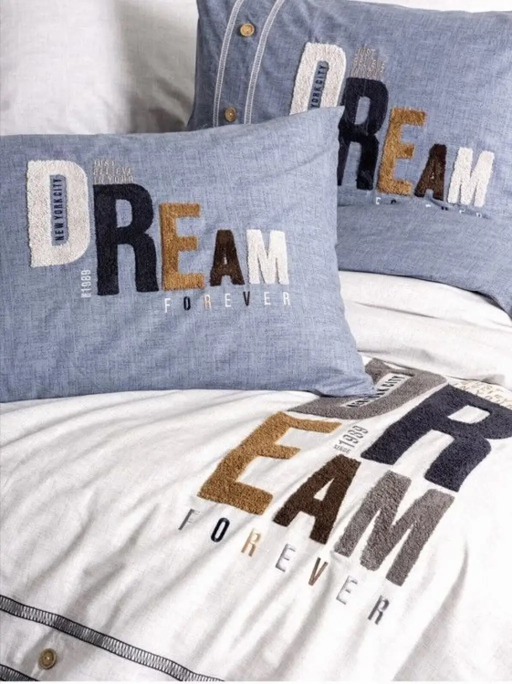 Cotton Box Mood Nakışlı Ranforce Çift Kişilik Nevresim Takımı Forever Gri