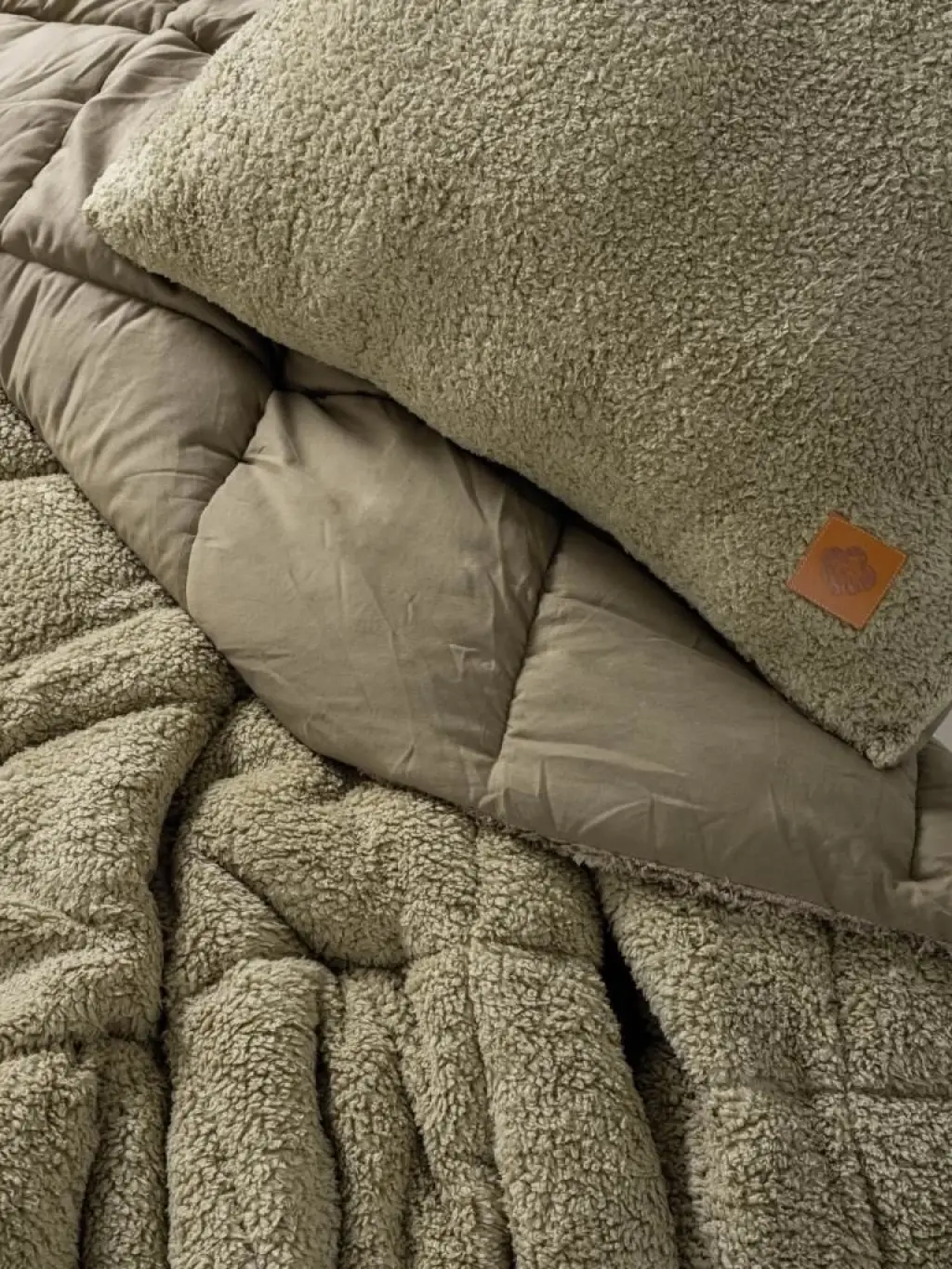 Cotton Box Peluş Çift Kişilik Yorgan Seti Taş