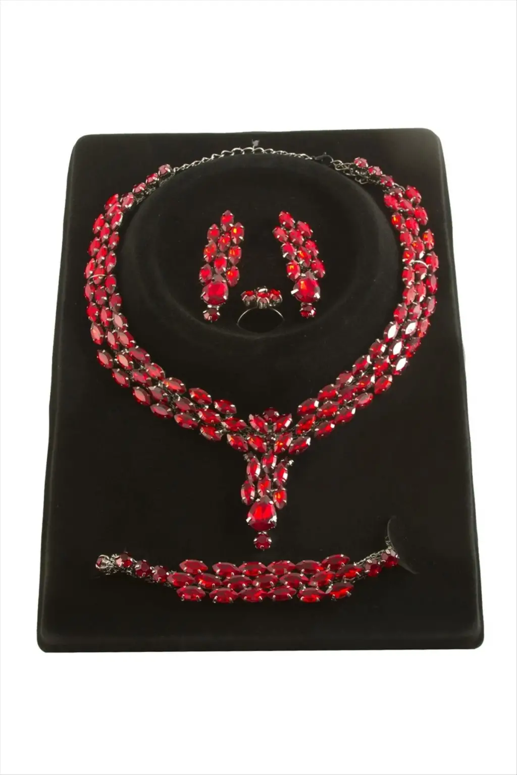 Set Kolye; Ürün malzemesi zirkon taştır. Ürün 1 sınıf kaliteli malzemeden üretilmiştir.Ürün kolye boyu 40 cm, bileklik boyu 18 cm ve küpe uzunluğu 4 cmdir. Kartlı ve paketiyle beraber gönderilecektir. Duş, deniz vb yerlerde kullanıma uygun degildir.