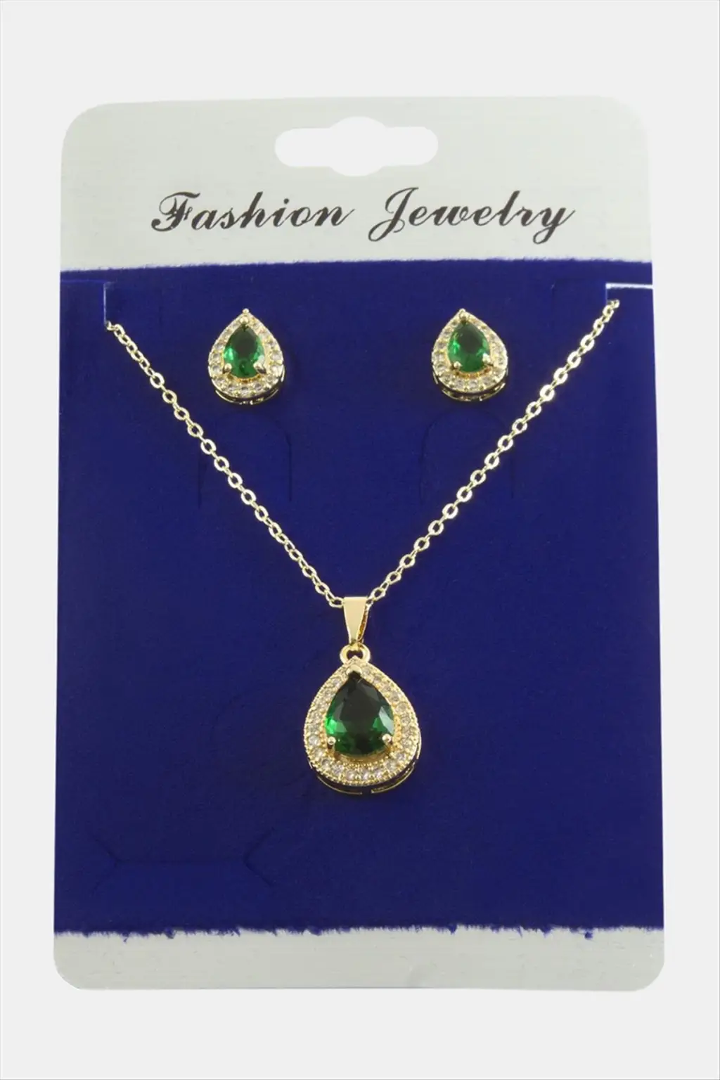 Kolye; Ürün malzemesi metal ve zirkon taştan üretilmiştir. 1 sınıf kaliteli malzeme kullanılmıştır. Ürün 1 adet kolye, ve 1 adet çift küpe vardır. Ürün zincir uzunluğu 45 santimdir. Ürün ucundaki taşlı aparat boyu 1,5 cmdir.