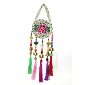Renkli Püsküllü Şans Kedisi Feng Shui Askılık