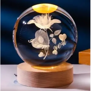 Dekoratif Gül I Love You Tasarımlı Ahşap Altlıklı Işıklı Cam Küre Büyük Boy Cam:8cm Ahşap:2cm