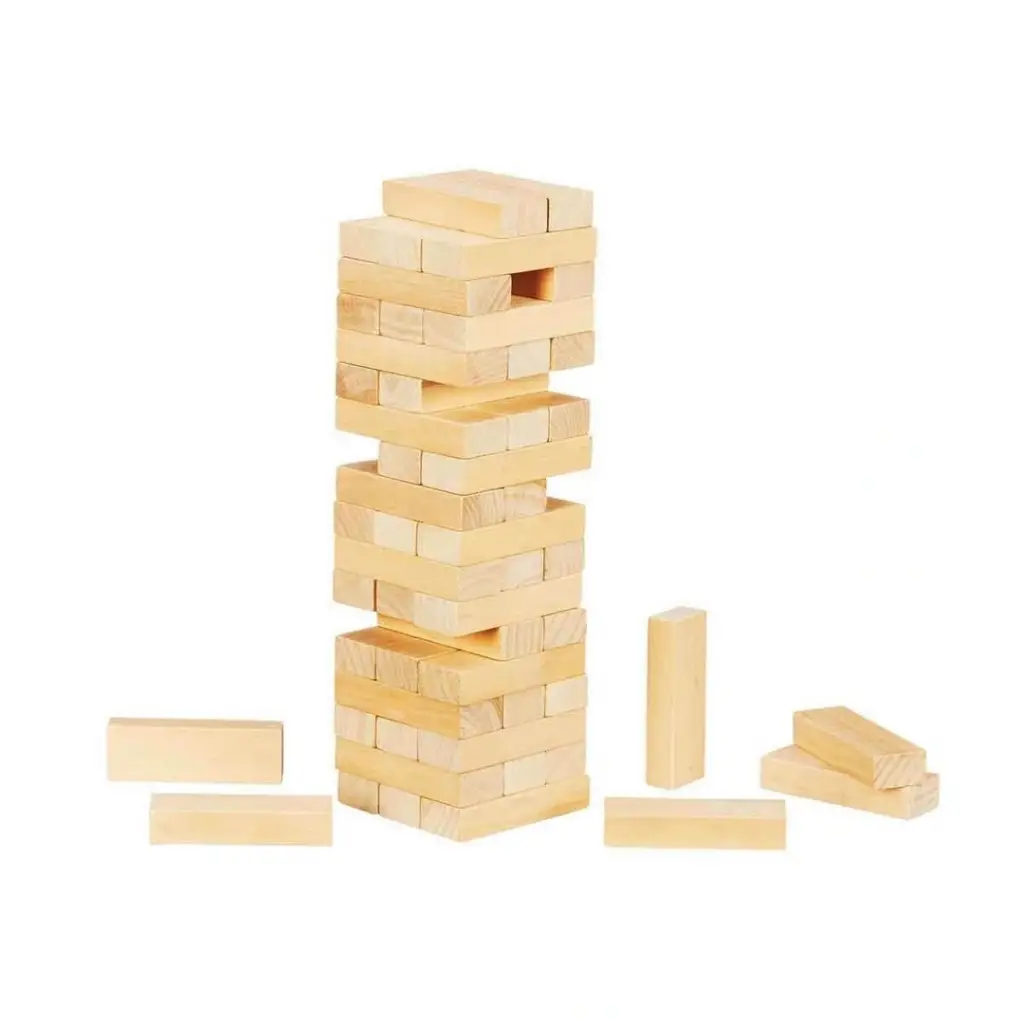 Denge oyununda ama.ccedil; tahta blokları .ccedil;ekerek kulenin .uuml;st.uuml;ne koymak, tabii kuleyi devirmeden! Ahşap blokları 3.rsquo;l.uuml; sıralar