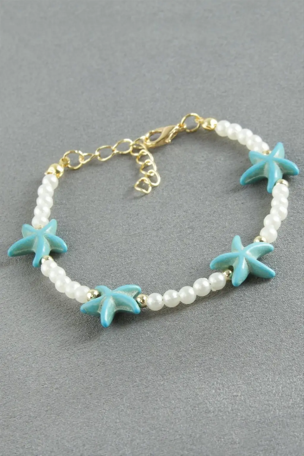 Bileklik; Ürün malzemesi turkuaz taş ve incidir. Ürün boyu 19 cmdir. Fiyat 1 adet için geçerlidir. Kartlıdır.
