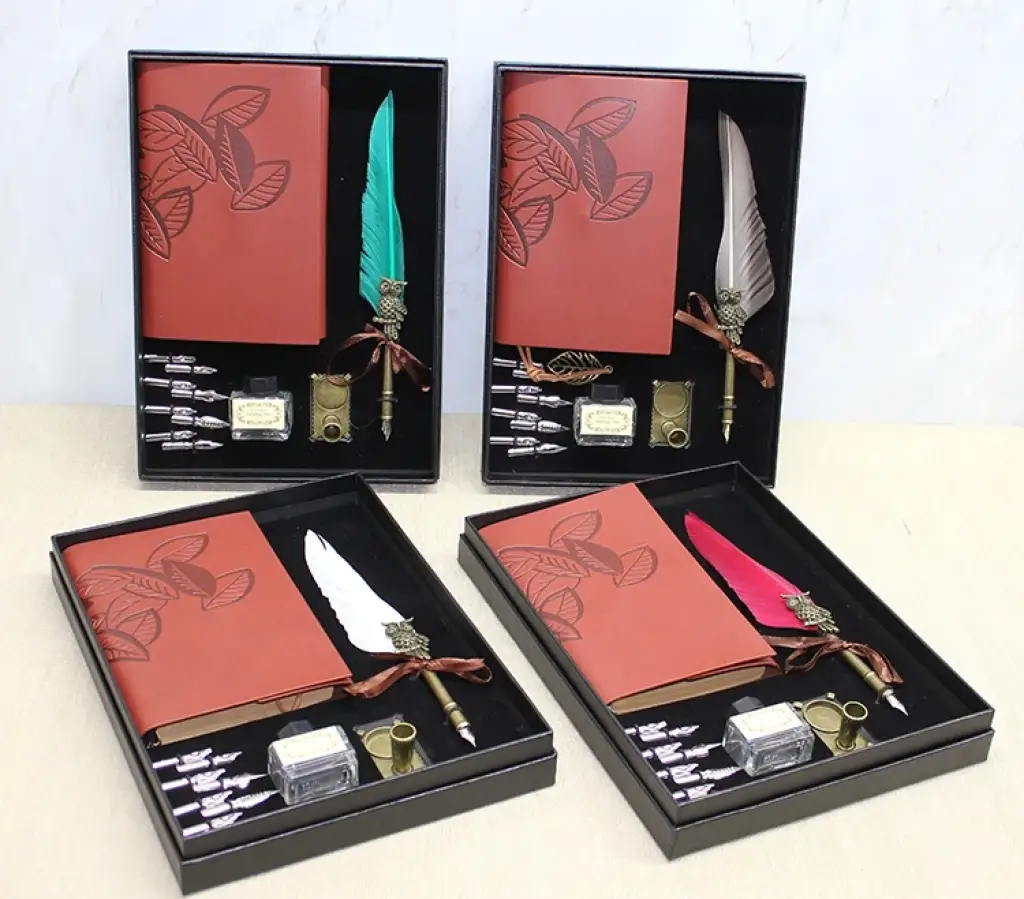 DERİ DEFTERLİ DİVİT HOKKA SETİ MODEL 1Ürün ÖzellikleriDeri Defterli Divit Hokka Seti Model 1, nostaljik yazı deneyimini modern bir sunumla bir araya getiren şık ve özel bir yazı setidir. 29x21 cm kutu boyutuna sahip bu set, deri kapaklı defter, divit kalem, farklı uç seçenekleri ve hokka mürekkebiyle zengin bir kullanım alanı sunar. Deri defter kişisel notlar, özel yazılar, günlük tutma ve kaligrafi çalışmaları için ideal bir yüzey sağlarken divit kalem nostaljik ve estetik bir yazım hissi yaratır. Hokka mürekkebi ile birlikte sunulan farklı uçlar hem ince hem kalın hatlarda yazı yazma imkânı verir. Hem koleksiyon değeri taşıyan hem de özel bir hediye niteliği sunan bu set, yazı sanatına ilgi duyanlar için ideal bir tercihtir. Renk seçimi yapılamaz; görseldeki seçeneklerden biri olarak gönderilir.Paket İçeriği1 adet Deri Defterli Divit Hokka Seti Model 1