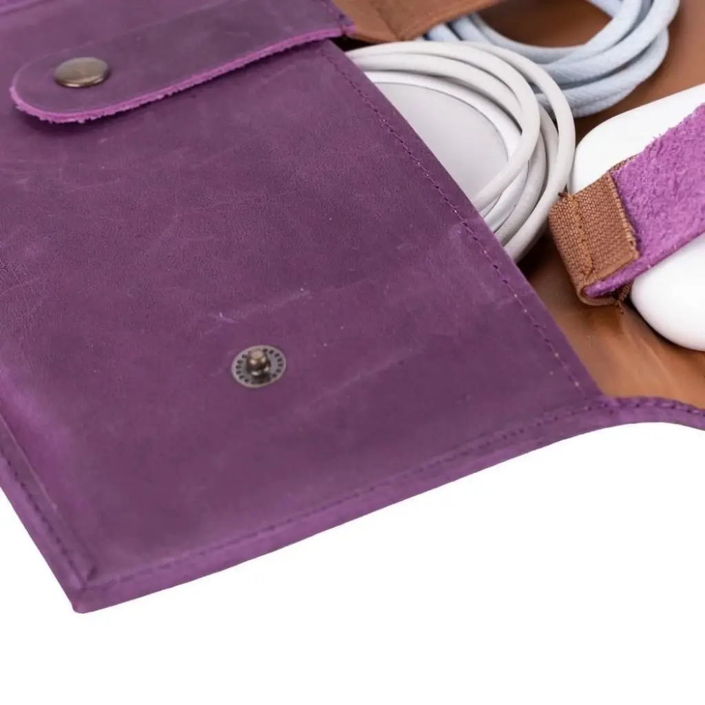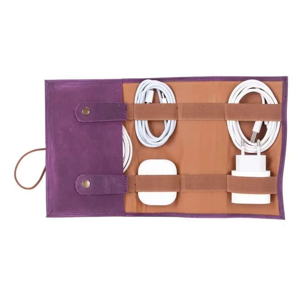 Deri Kablo Aksesuar Taşıma Çantası Antik Mor