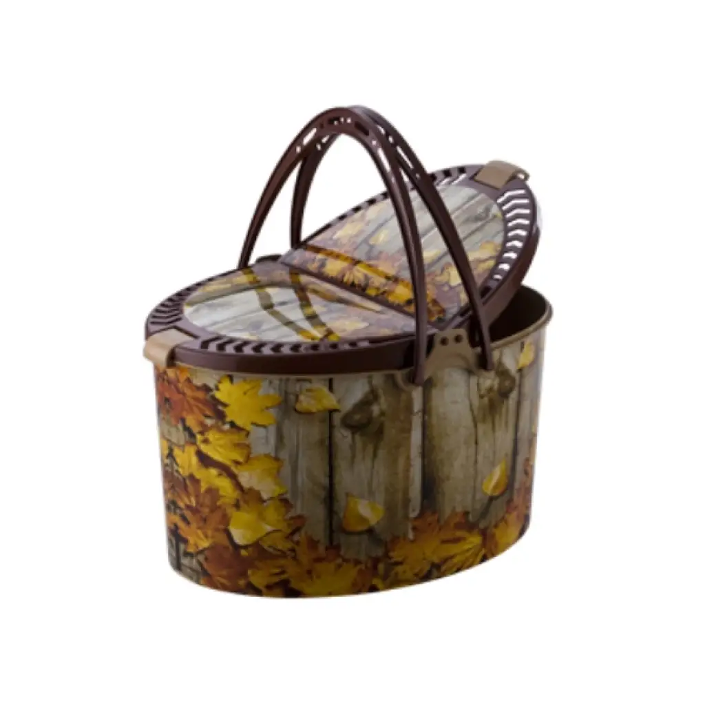 DESENLİ PİKNİK SEPETİÜrünümüz plastikten üretilmiştir.Rahat ve kullanışlıdır.Ürün Ölçüleri : 23 x 30,5 x 40 NOT : Ürünler stok durumuna göre karışık desen gönderilmektedir.