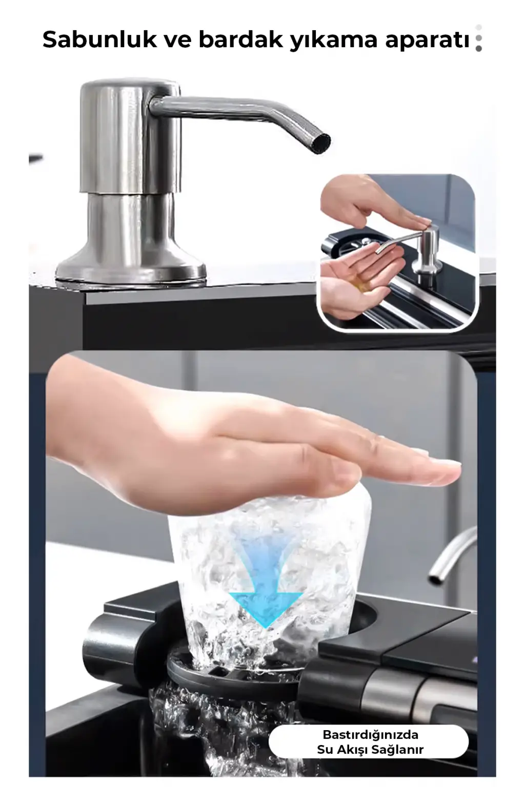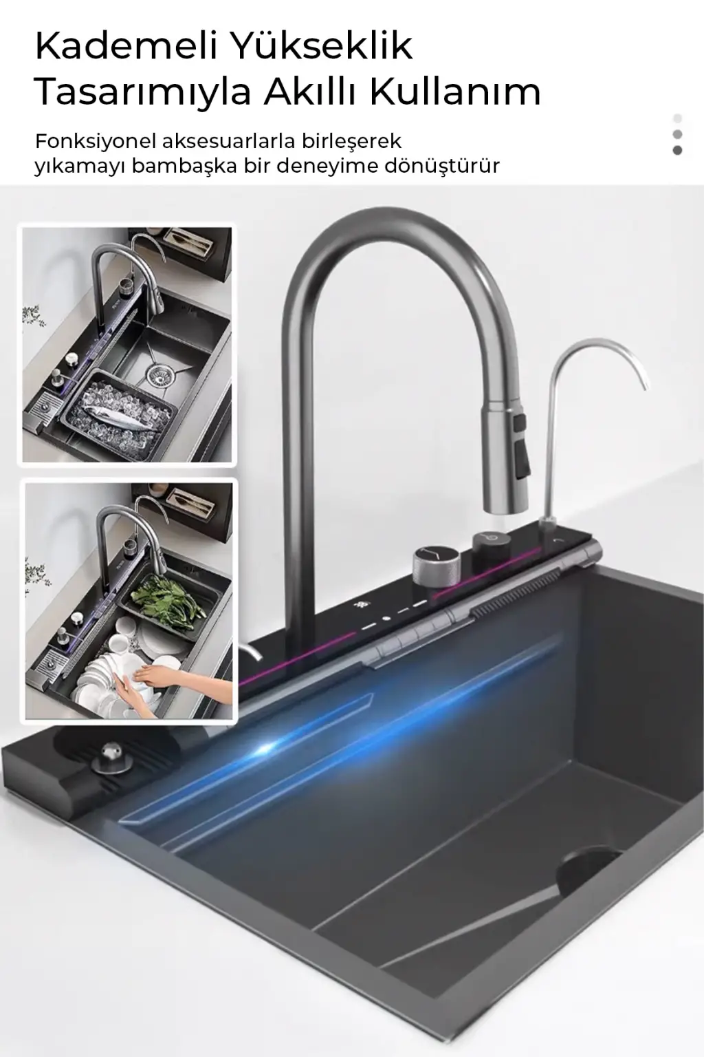 Modern mutfaklar için tasarlanan bu akıllı eviye seti, teknoloji ve fonksiyonelliği tek üründe birleştirerek mutfağınıza profesyonel bir dokunuş kazandırır.
