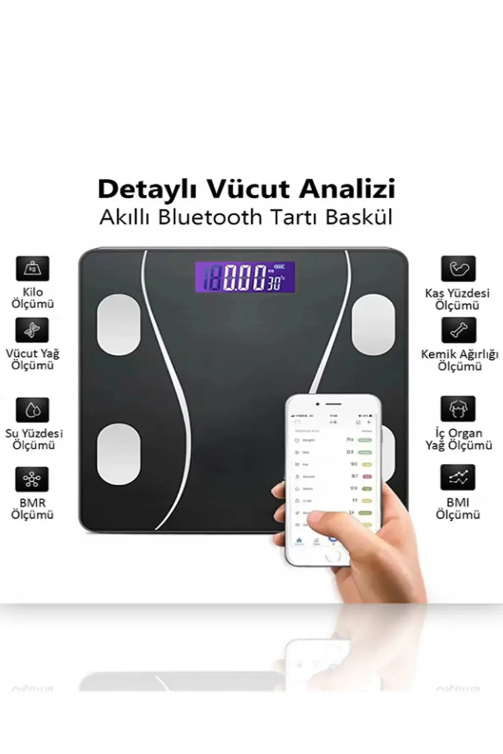 Dijital Baskül Yağ Su Kas Vücut Kitle Endeksi Kilo Ölçer Pilli Bluetoothlu