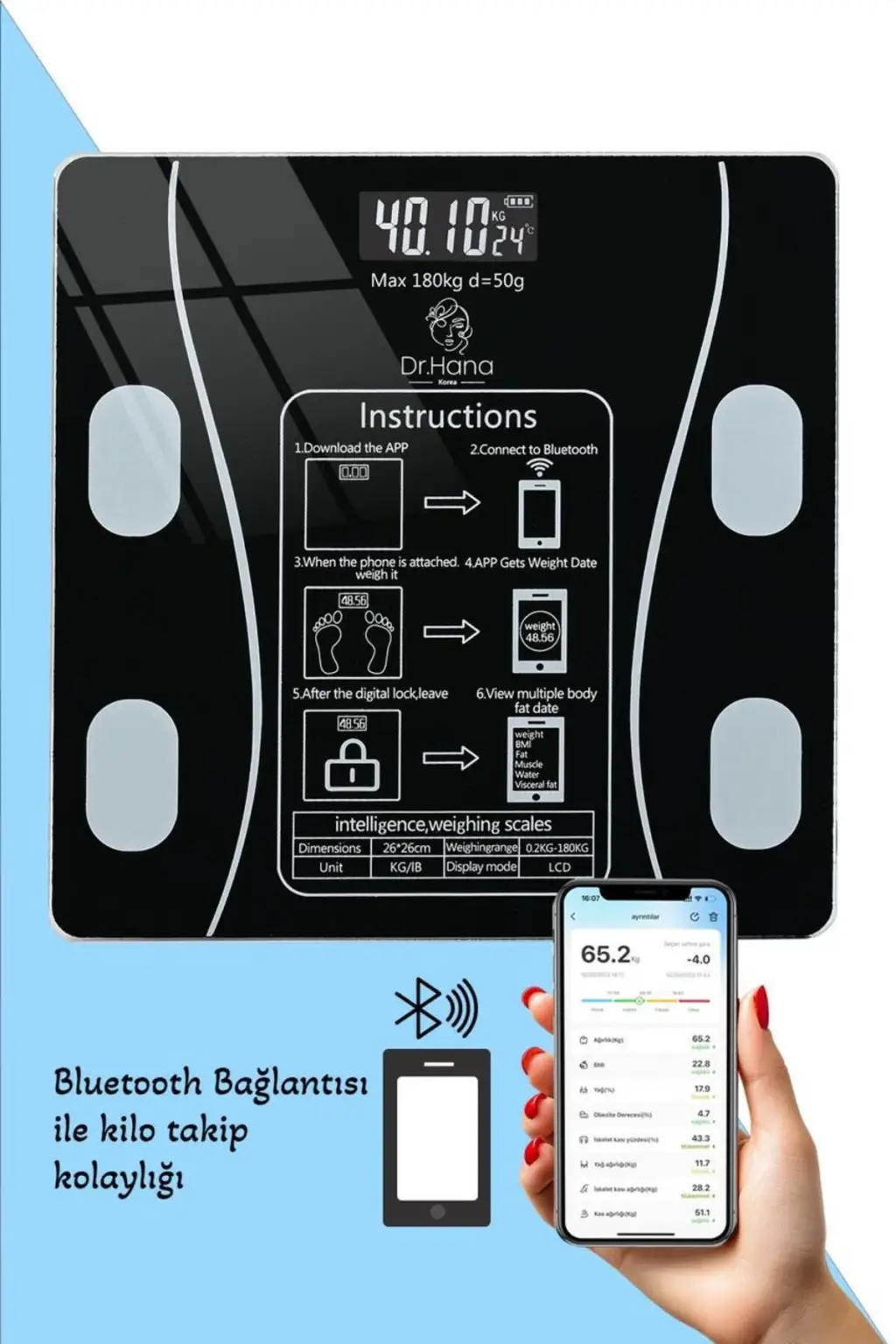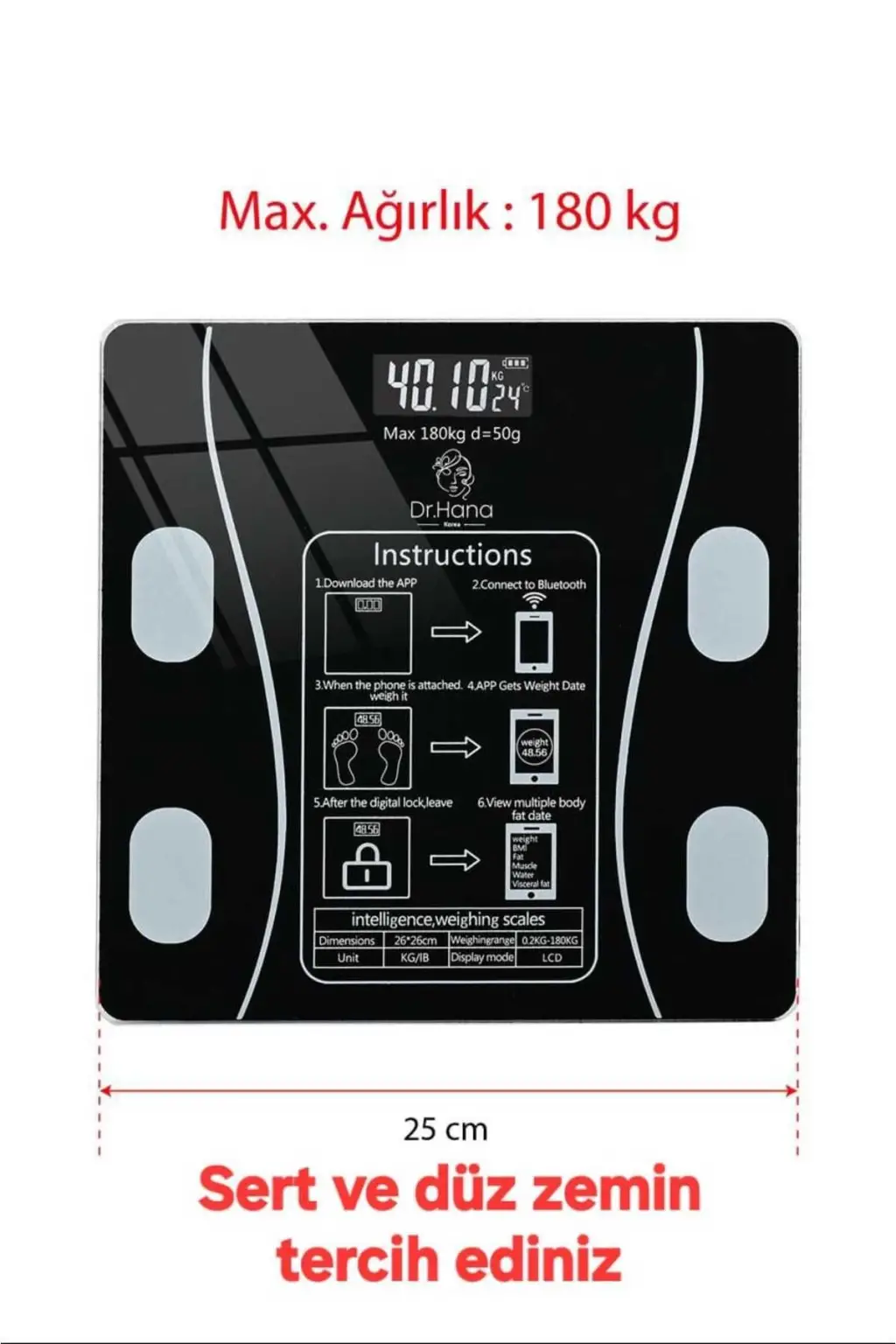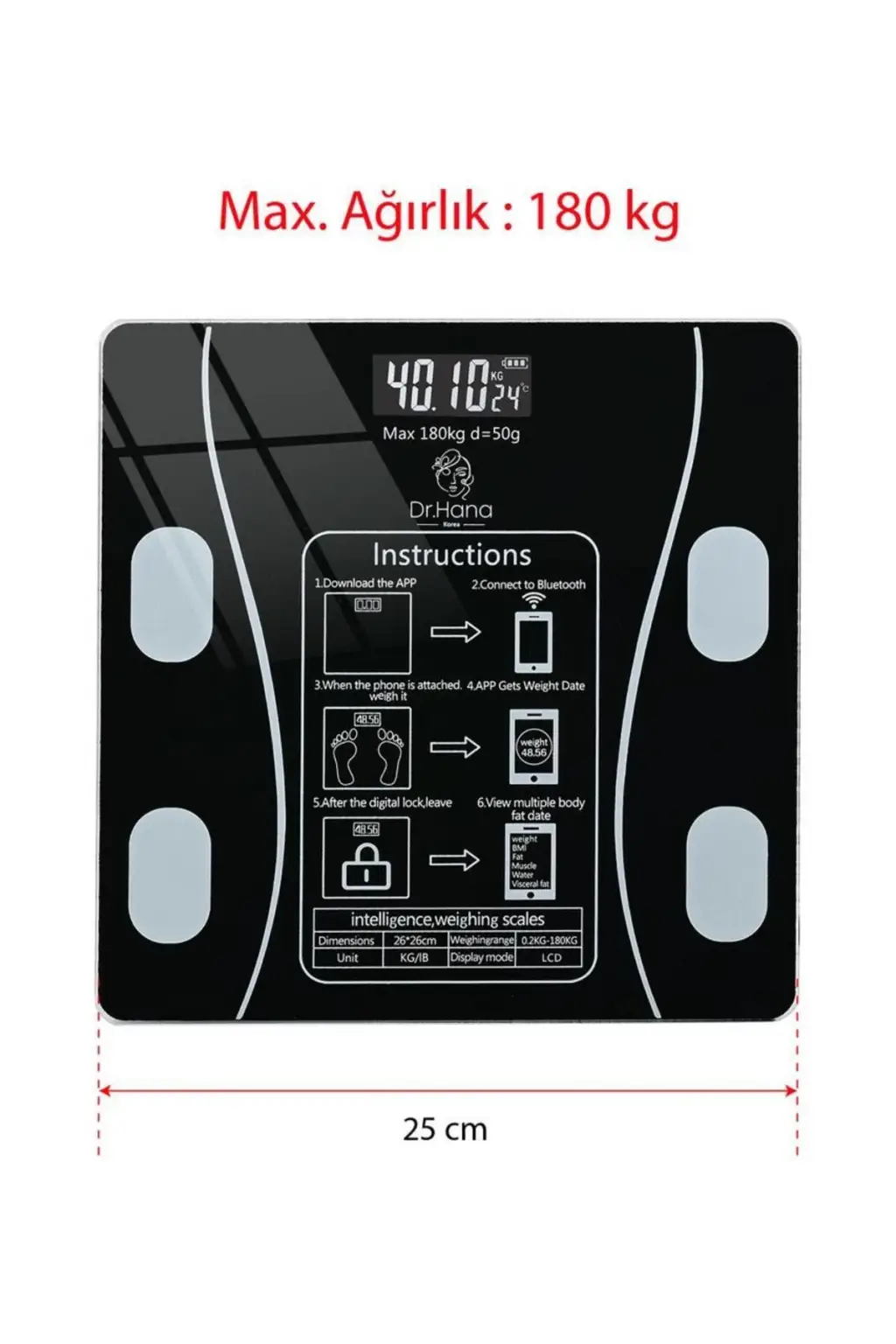 Vücut Yağ Analizi Yağ Ölçer Kare Dijital Baskül Tartı Pilli Bluetoothlu