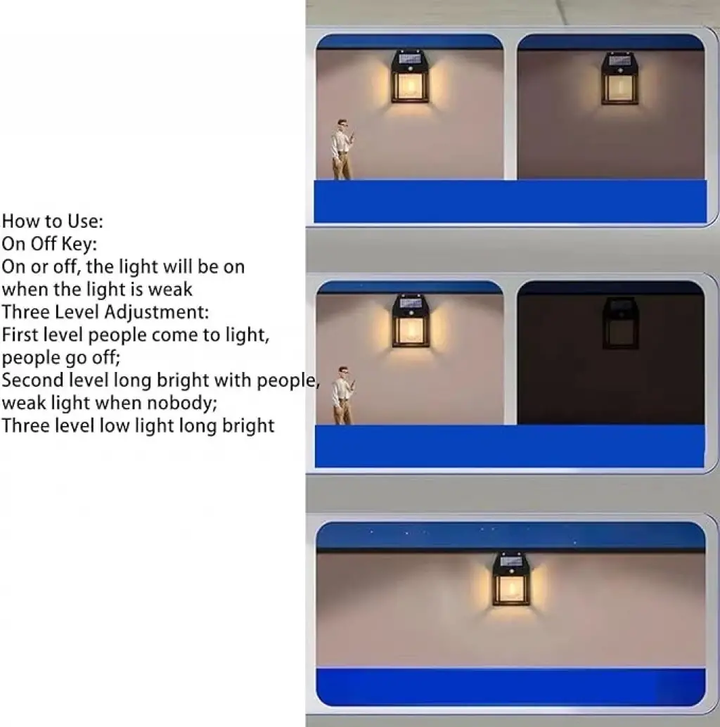 DIŞ MEKAN SOLAR LAMBADış Mekan Solar Lamba, güneş enerjisiyle çalışan çevre dostu bir aydınlatma çözümüdür. Gündüzleri güneş ışığından enerji toplar ve bu enerjiyi akşam saatlerinde kullanarak bahçenizi veya dış mekan alanlarınızı aydınlatır. Su geçirmez tasarımıyla dış koşullara dayanıklıdır. Kurulumu kolaydır ve elektrik bağlantısı gerektirmez, böylece enerji tasarrufu sağlar. Hem dekoratif hem de pratik bir aydınlatma çözümü sunan bu lamba, bahçenize ve outdoor mekanlarınıza şıklık katar.Dış Mekan Solar Lamba, güçlü 1800 mAh pil kapasitesiyle enerji verimliliğini artırır. 120 derecelik geniş endüksiyon açısı ve 5 ila 8 metre arasındaki endüksiyon mesafesi sayesinde, etrafındaki hareketleri algılayarak otomatik olarak aydınlatma sağlar. Ayrıca, 15 saniye boyunca hiçbir hareket algılanmazsa otomatik olarak kapanma özelliğine sahiptir. Bu hareket sensörlü özellikleriyle dış mekan aydınlatmanızı etkili ve enerji tasarruflu bir şekilde yönetir.Paket İçeriği1 adet dış mekan solar lamba