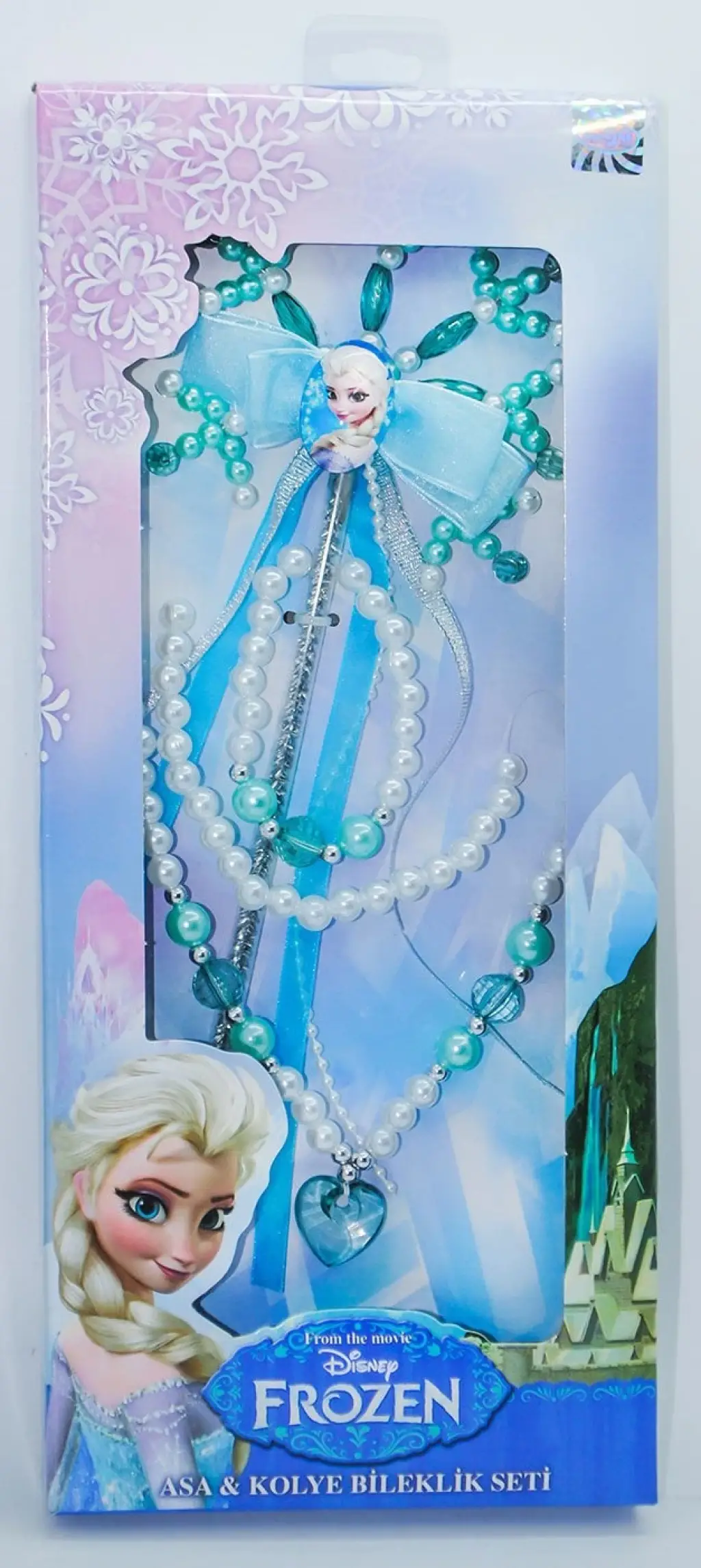 Set 1 adet Elsa rozetli asa, kolye ve bileklikten oluşmaktadır.