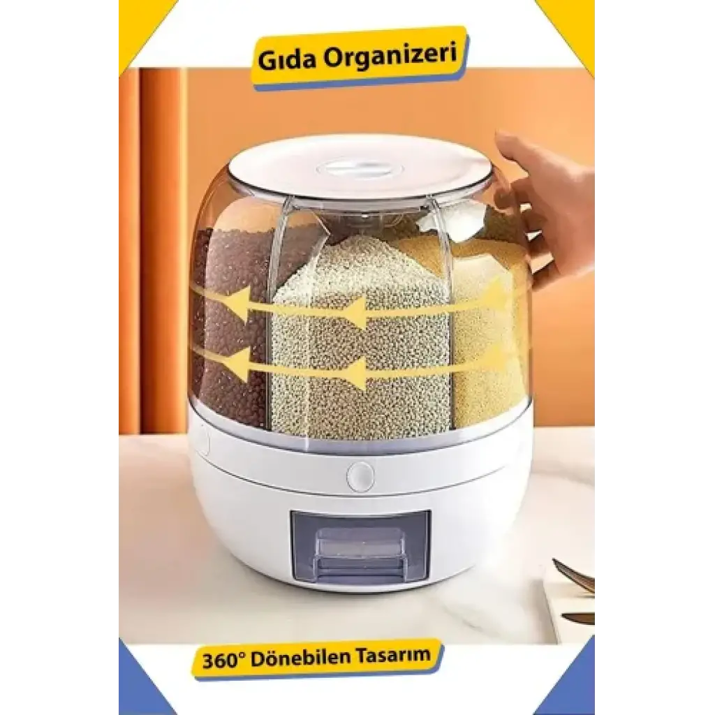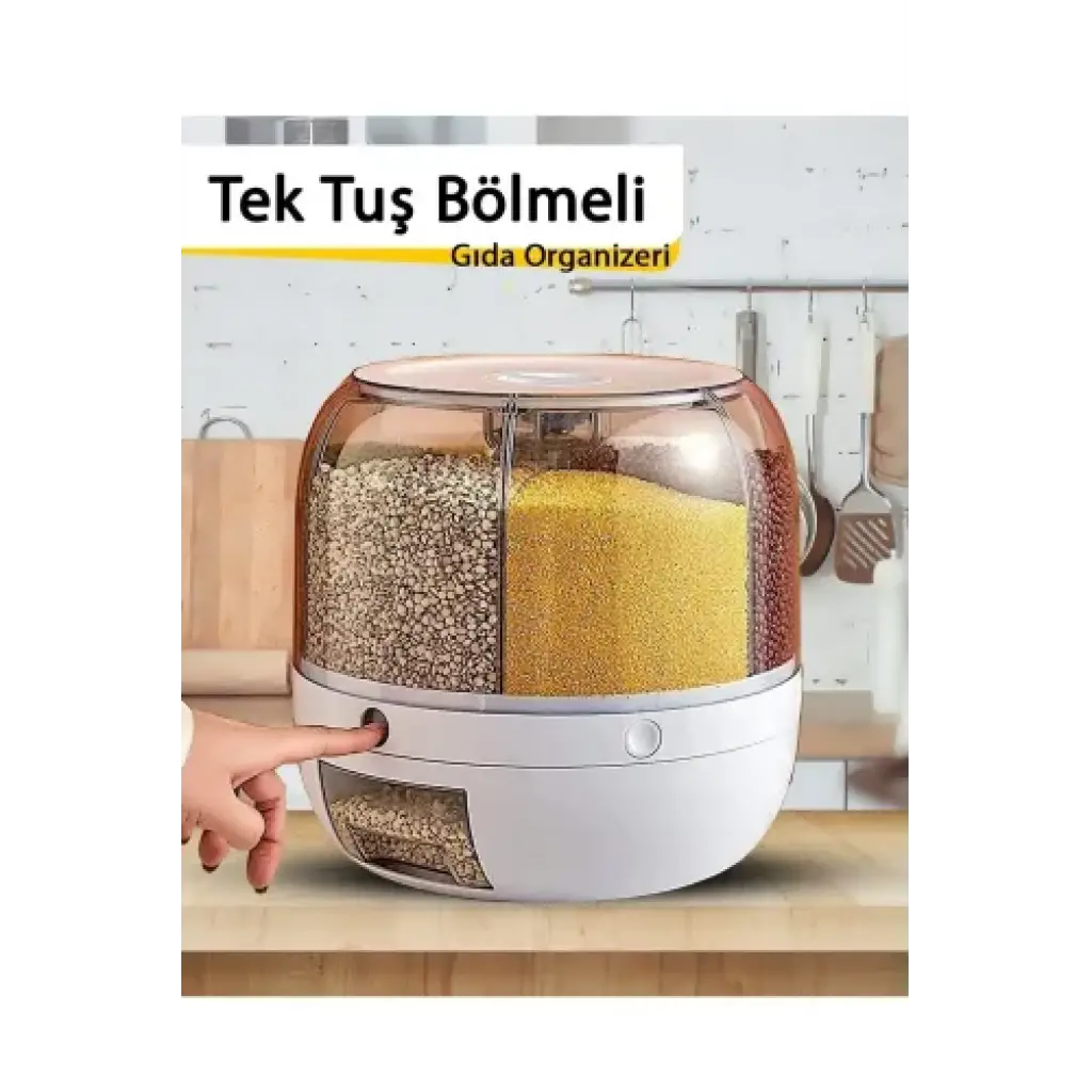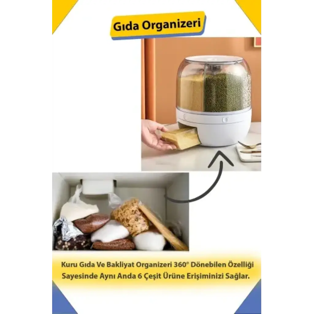 Kuru Gıda Ve Bakliyat Organizeri 360° Dönebilen 6 Bölmeli Hava Geçirmez Saklama Kabı 6 LtKuru Gıda Ve Bakliyat Organizeri 360° Dönebilen 6 Bölmeli Ayrıştırıcılı Hava Geçirmez Saklama Kabı Hava geçirmez kuru depolama sistemi ile silikon mühürlü kolay kilitli kapak.Dayanıklı ve kolay istiflenebilir, çok yer kaplamaz.Bulaşık makinesinde yıkanabilir.360 Derece DönüşErgonomik TasarımPratik KullanımÇıkarılabilir Üst KapakTek Tuş Kullanım24x27 Boyutlara SahiptirToplamda 6 Bölmeye Ve Her Bölme 1 LT Kapasiteye Sahiptir.Düğmeler Hazneyle Eşit Hizalandıktan Sonra Kullanılmalıdır.