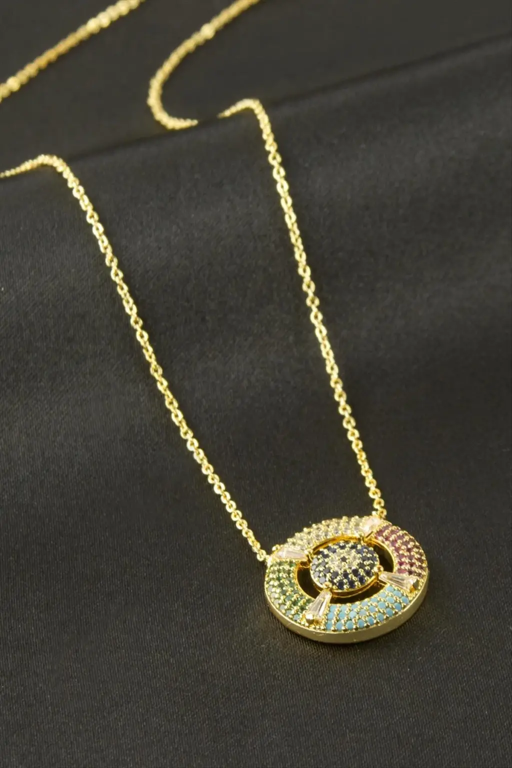 Kolye; Ürün malzemesi metal ve zirkon taşlıdır. Ürün boyu 45 cmdir. Kartlıdır. 1 sınıf kaliteli malzemeden üretilmiştir. Ürün ucundaki aparat boyu 2 cmdir.