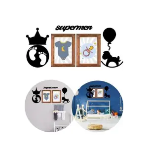 DECO103 Supermen Dekoratif Duvar Süsü Tablo Aksesuar Ahşap Tasarım Hediye Pano Sticker Seti