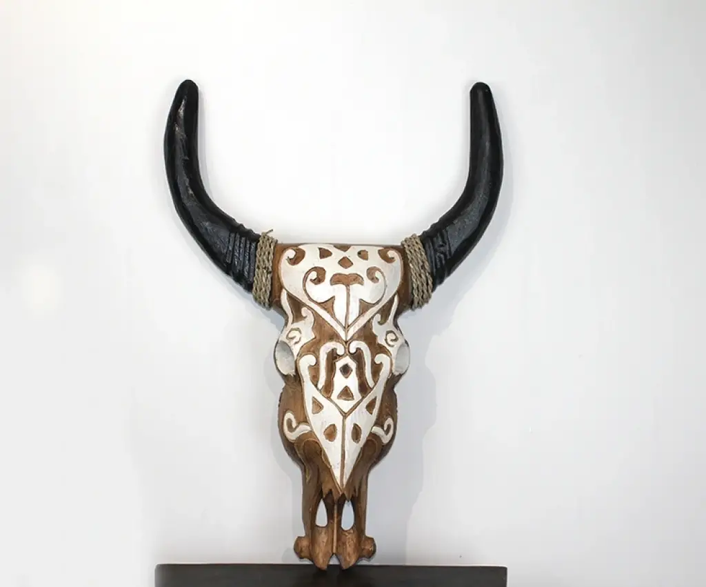 DUVARA ASMALI BUFALO KAFASI Ürün ÖzellikleriBu dekoratif bufalo kafası, şık tasarımı ve geleneksel motifleriyle ev dekorasyonuna zarif bir dokunuş katar. Yüksek kaliteli malzemelerden üretilmiş olan kafanın boyutları 75x45 cm olup, duvara asılabilir ve dikkat çekici bir görünüm sağlar. Siyah boyalı büyük boy boynuzlar ve beyaz-sarı desenli yüzey, ürünü estetik açıdan etkileyici kılar.Mekânınıza rustik, bohem veya doğal bir hava katmak için mükemmel bir seçenektir.Paket İçeriği1 Adet Duvara Asmalı Bufalo Kafası