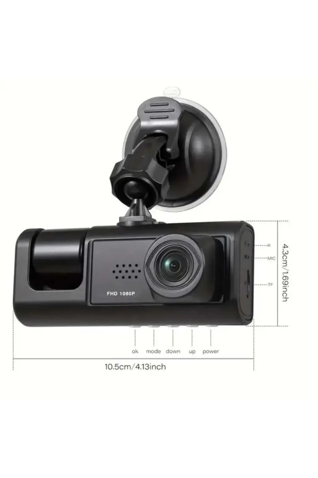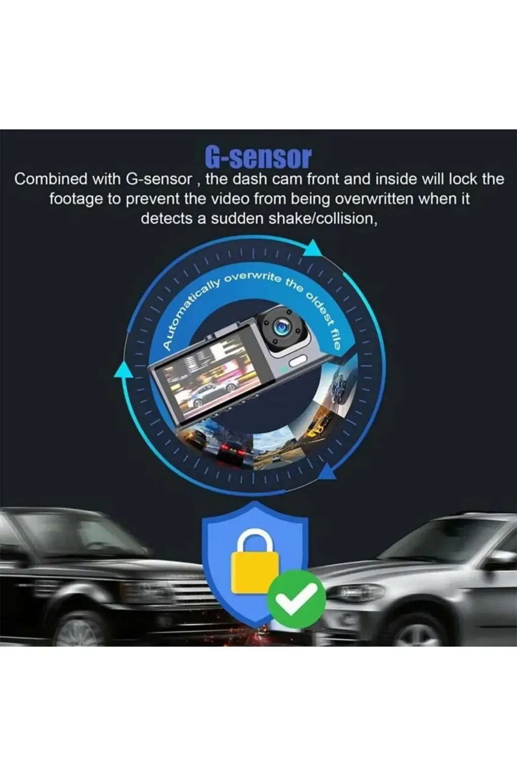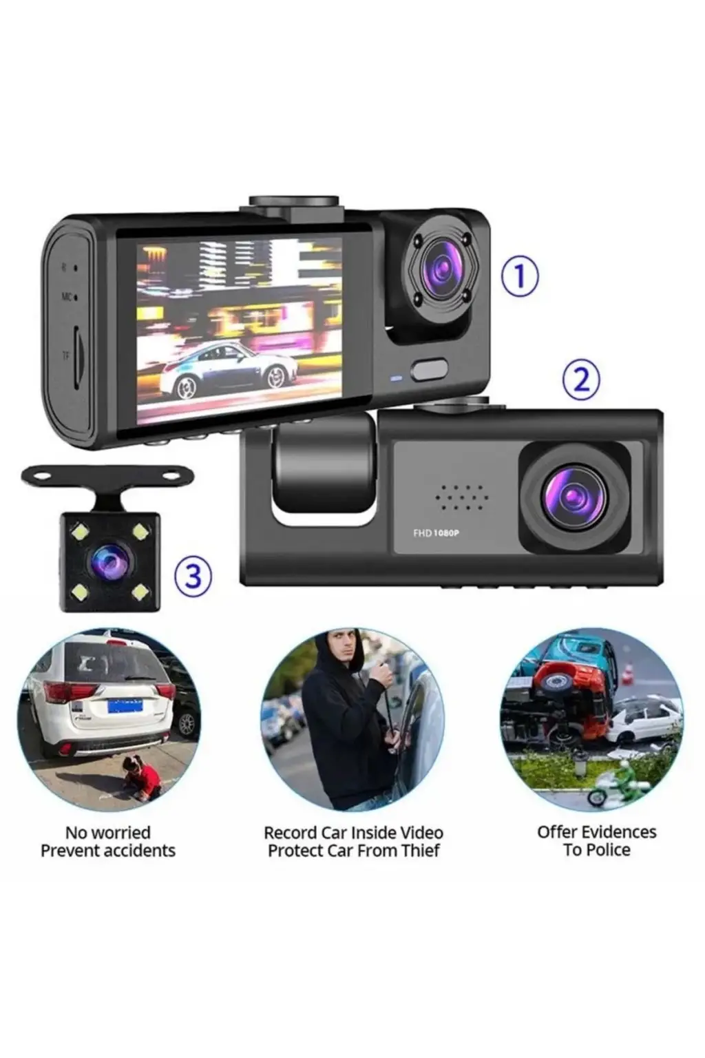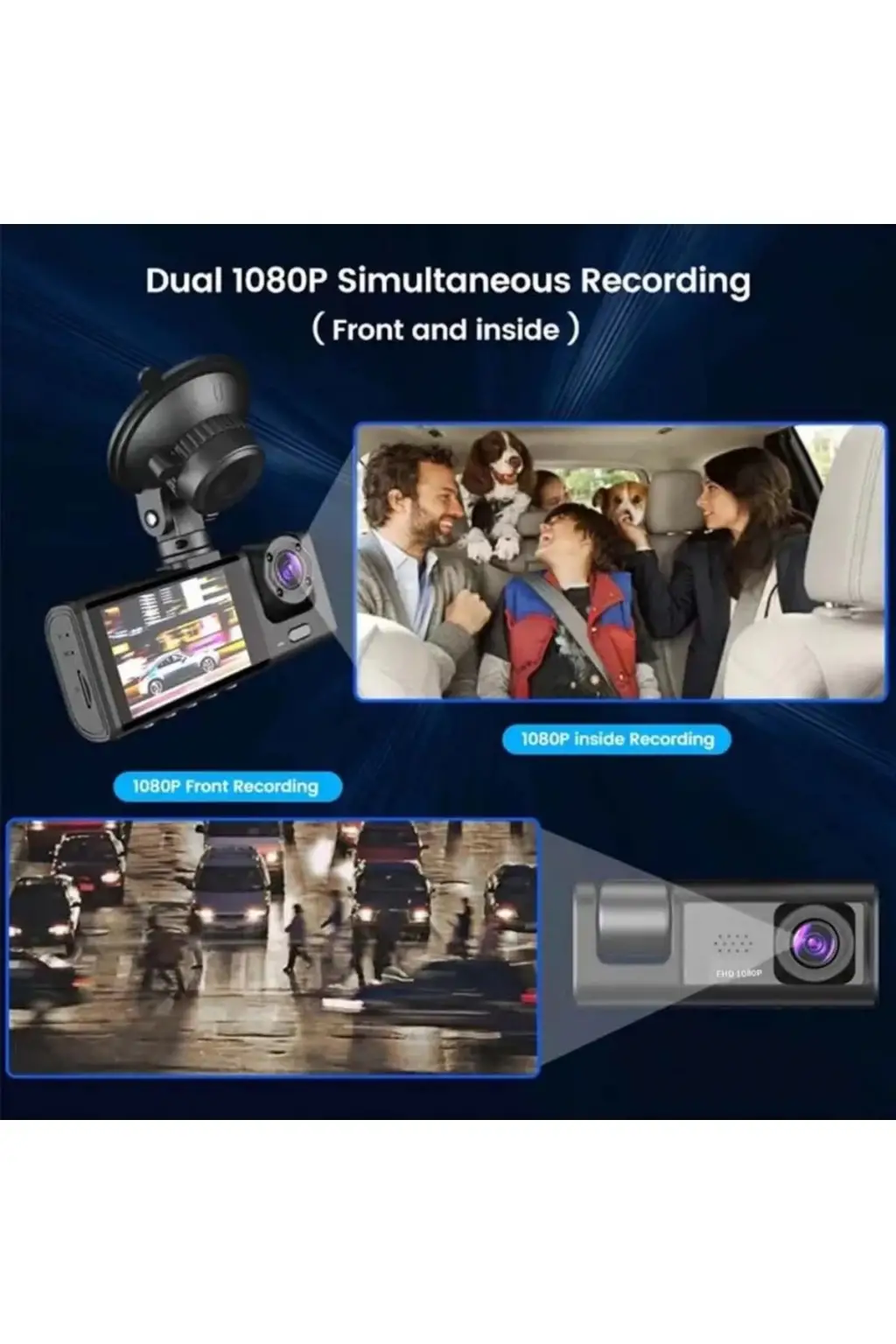 1080P Dash Cam Full Hd Araç içi Kamera Ön Arka ve İç Kayıt 3 Kamera Gece Görüşlü G Sensör Geniş Açı