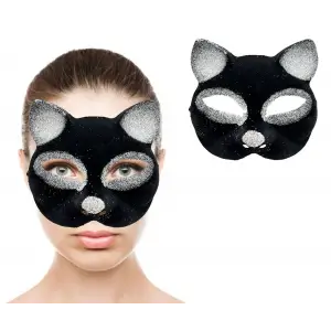 Siyah Gümüş Simli Kedi Maskesi