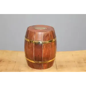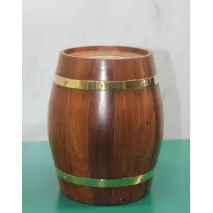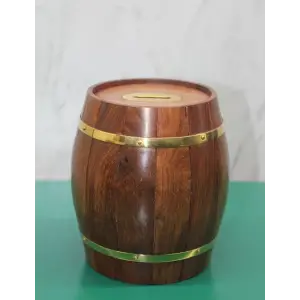 Pirinç Ahşap Fıçı Kumbara 15 Cm Wb538
