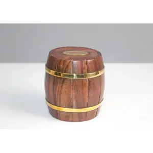 Pirinç Ahşap Fıçı Kumbara 12.5 Cm Wb535