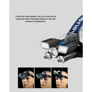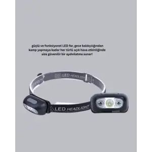 Şarjlı LED Kafa Feneri | 4 Modlu Akıllı Sensörlü Far | Su Geçirmez IPX5 Kamp ve Balıkçı Lambası