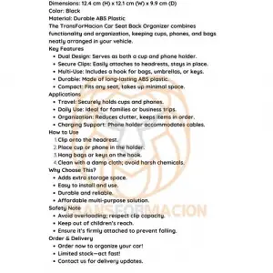 Araç Koltuk Arkası Organizer Bardak Telefon Tutucu