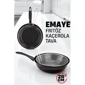 Fritözlü Emaye Kızartma Tavası- Kızartma Kaçerola Multi Kullanım 26 CM