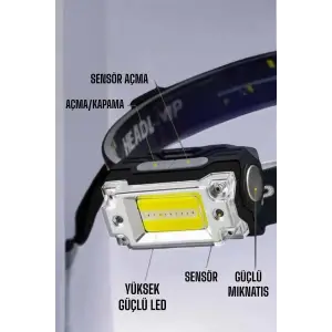 Kafa Lambası Kamp Lambası Sensörlü Şarjlı Ayarlanabilir