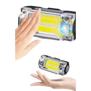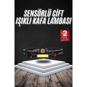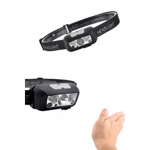 Beyaz Led Işık Sensörlü Kafa Lambası Lityum Batarya Led El Fenerli Şarjlı